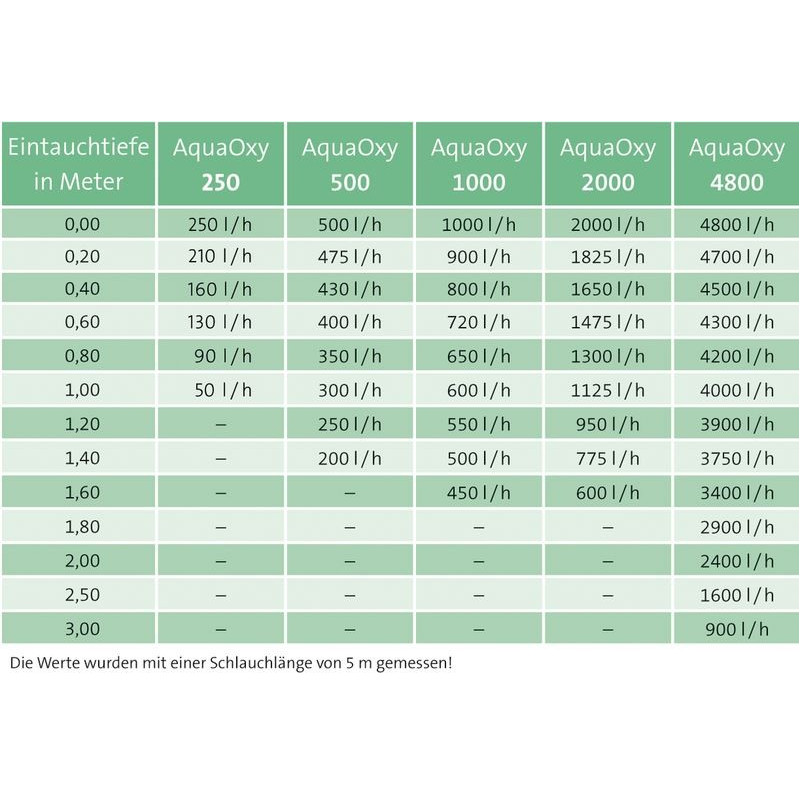 Die AquaOxy Belüfterpumpen sind optimal auf den OxyTex abgestimmt. Mit der AquaOxy 4800 kann ein OxyTex in Tiefen bis zu 3 m eingesetzt werden.