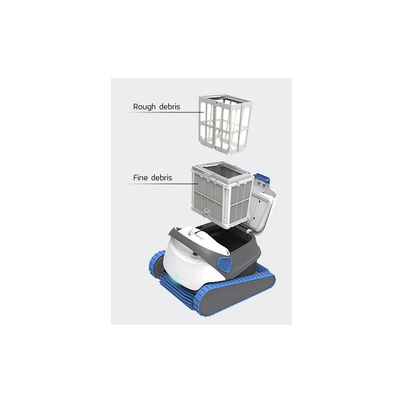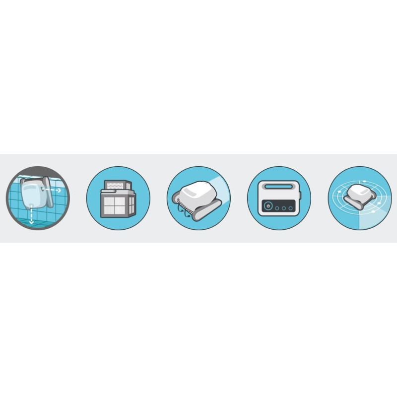 Der zum Patent angemeldete Mehrwege-Wasserdurchfluss gewährt eine sichere Haftung auf allen Arten von vertikalen Oberflächen und garantiert eine effiziente Reinigung der Wände und Wasserlinie sowie verbesserte Navigation. Ein Top Gerät für Ihr Schwimmbad!