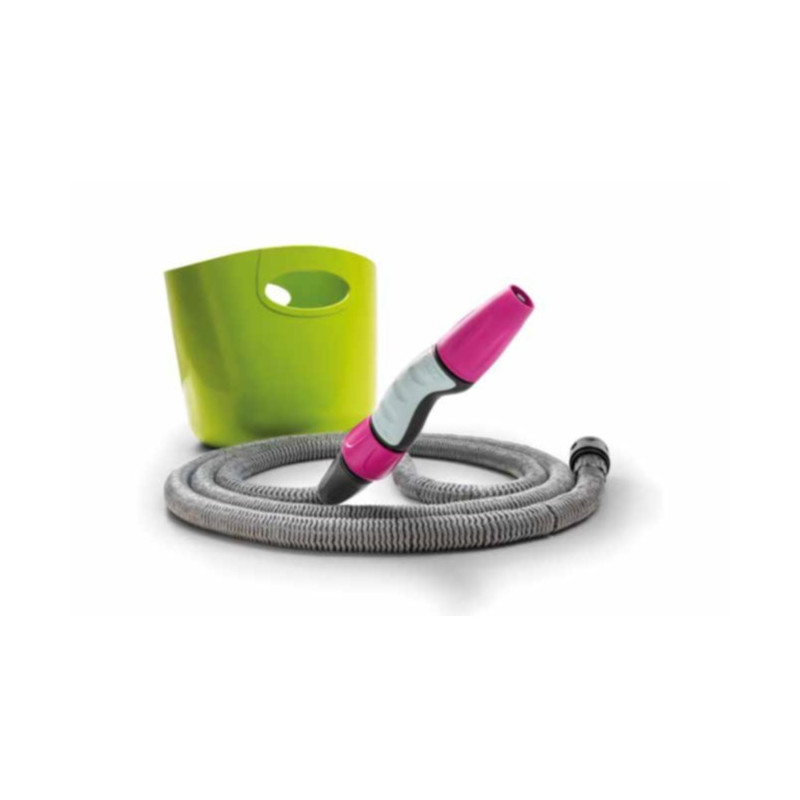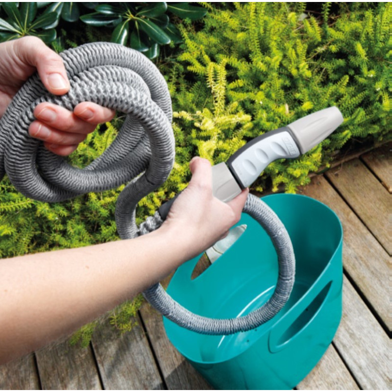 Komplettset selbstausdehnender Schlauch zur Bewässerung von Pflanzen und Blumen. Ideal geeignet für Balkone, Terrassen oder kleine Gärten. Praktisch, leicht und einfach zu Benutzen. Der Schlauch ist 5 Meter lang und dehnt sich bei Wasserdruck auf 15 Meter aus. Nach dem Gebrauch entleert sich der Schlauch selbsttätig und zieht sich auf seine ursprüngliche Länge von 5 Meter zurück. Das Set enthält eine praktische Verstautasche, in der der Schlauch nach dem Gebrauch platzsparend und ordentlich aufbewahrt werden kann.