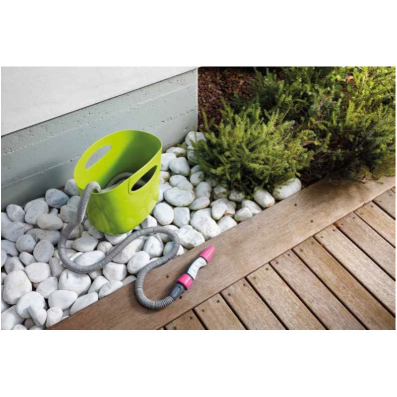 Komplettset selbstausdehnender Schlauch zur Bewässerung von Pflanzen und Blumen. Ideal geeignet für Balkone, Terrassen oder kleine Gärten. Praktisch, leicht und einfach zu Benutzen. Der Schlauch ist 5 Meter lang und dehnt sich bei Wasserdruck auf 15 Meter aus. Nach dem Gebrauch entleert sich der Schlauch selbsttätig und zieht sich auf seine ursprüngliche Länge von 5 Meter zurück. Das Set enthält eine praktische Verstautasche, in der der Schlauch nach dem Gebrauch platzsparend und ordentlich aufbewahrt werden kann.