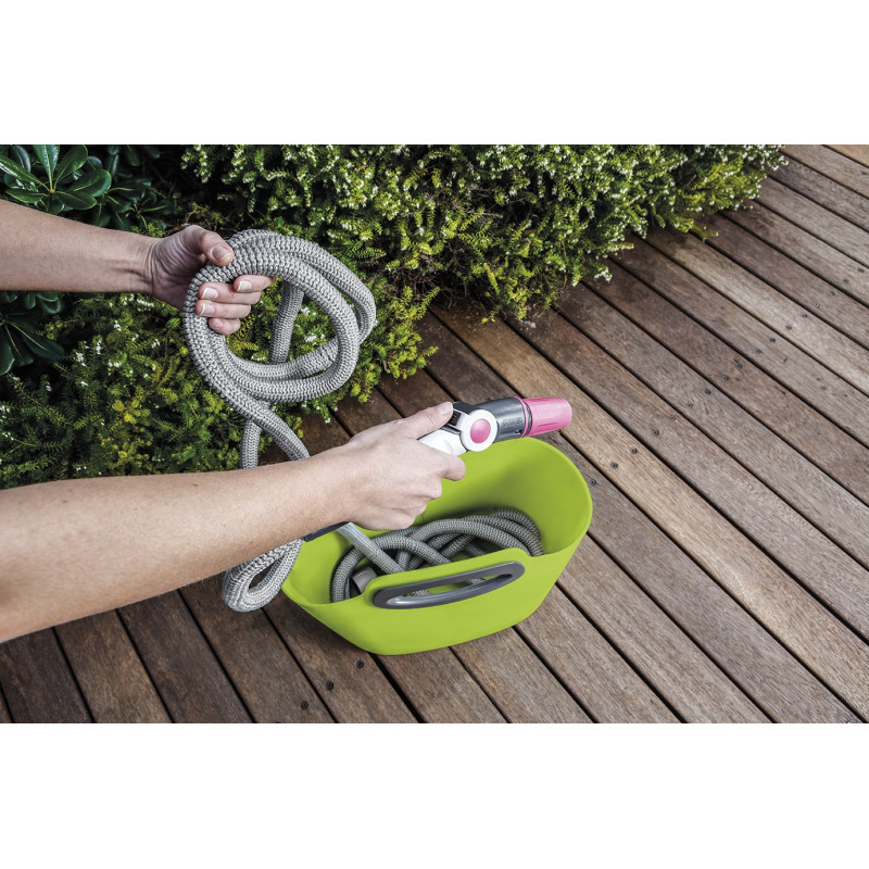Komplettset selbstausdehnender Schlauch zur Bewässerung von Pflanzen und Blumen. Ideal geeignet für Balkone, Terrassen oder kleine Gärten. Praktisch, leicht und einfach zu Benutzen. Der Schlauch ist 10 Meter lang und dehnt sich bei Wasserdruck auf 30 Meter aus. Nach dem Gebrauch entleert sich der Schlauch selbsttätig und zieht sich auf seine ursprüngliche Länge von 10 Meter zurück. Das Set enthält eine praktische Verstautasche, in der der Schlauch nach dem Gebrauch platzsparend und ordentlich aufbewahrt werden kann.