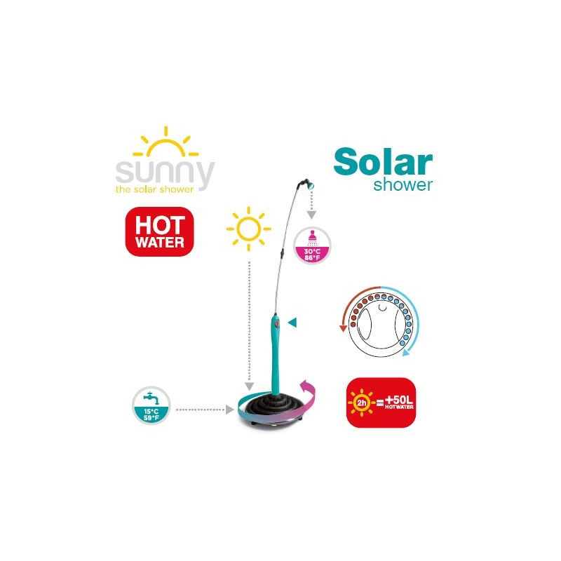 PRAKTISCH - Einfach zu transportieren, einfach aufzustellen, einfach wintersicher zu machen. Sunny Solardusche besticht durch seine Einfachheit. Egal ob im eigenen Garten, auf der Terrasse oder beim Camping - mit Sunny Solardusche haben Sie immer die richtige Abkühlung!