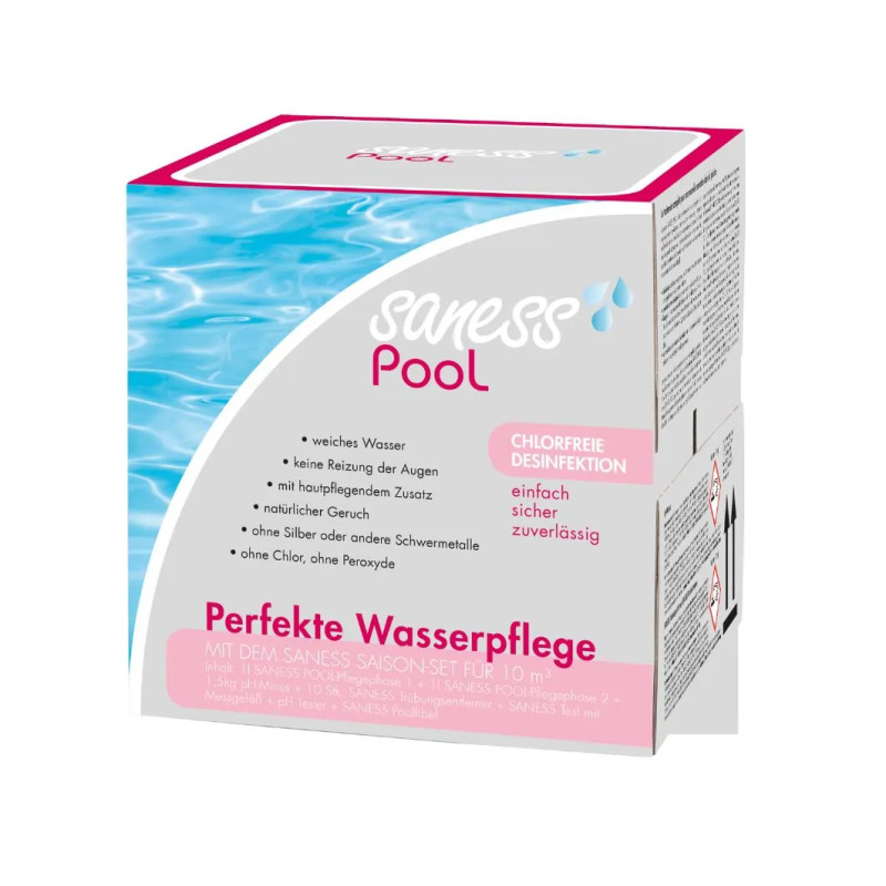 Die SANESS-Methode ist eine umfassende und sichere Wasserpflege. Sie ist absolut chlorfrei, beinhaltet keine oxydierenden Substanzen (wie Chlor, Peroxyde oder Aktiv-Sauerstoff) und ist völlig frei von Silber oder anderen toxisch wirkenden Schwermetallen.