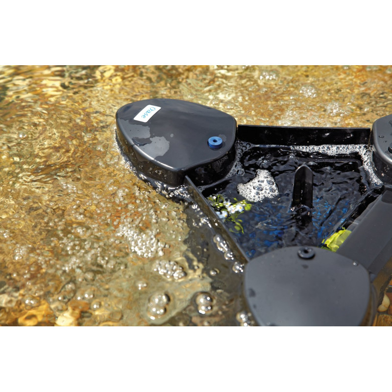 Der SwimSkim 50 kann entweder am Teichgrund oder mit den mitgelieferten Erdspießen am Teichrand fixiert werden.