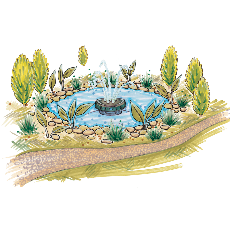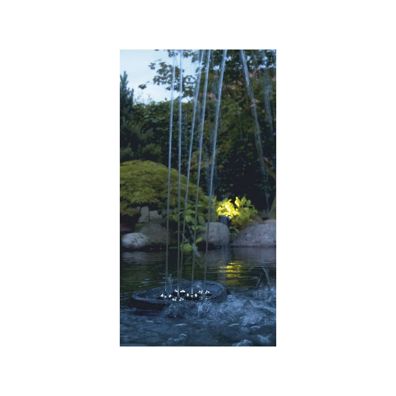 Besonders schöne Lichteffekte in der Abenddämmerung. Dieses Wasserspiel kann in unterschiedlichsten Umgebungen eingesetzt werden - vom Gartenteich bis zum architektonischen Becken.